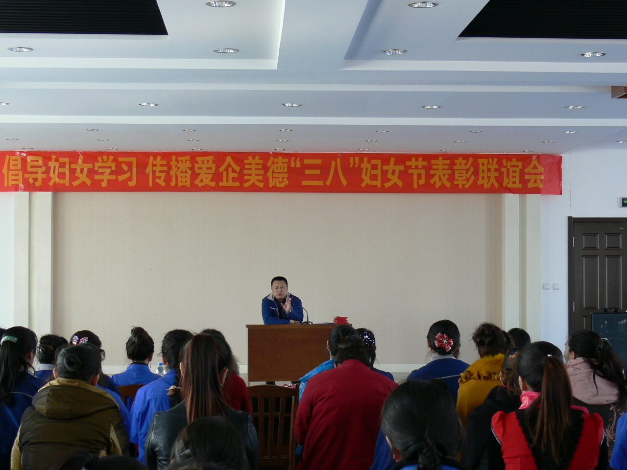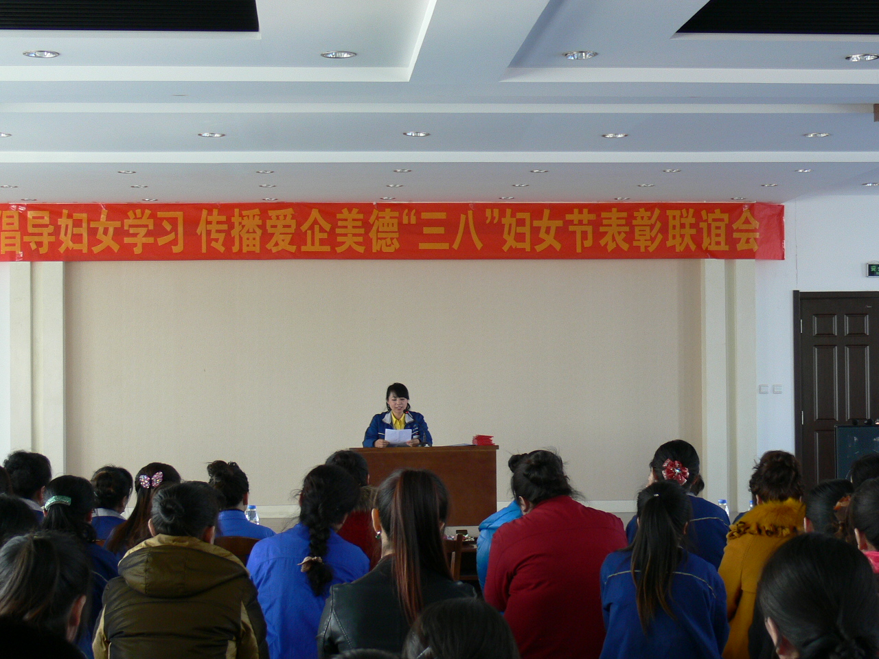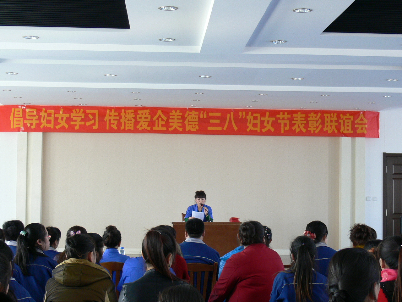 3月7日下午14:00在公司四樓會議室召開了倡導(dǎo)婦女學(xué)習(xí)轉(zhuǎn)播愛企美德“三八”婦女節(jié)表彰聯(lián)誼會,會議由婦女主任喬麗娜主持,公司總經(jīng)理宮晉臣、工會主席張敏應(yīng)邀參加聯(lián)誼會,并發(fā)表了講話,公司領(lǐng)導(dǎo)充分肯定了公司女工對我公司的貢獻(xiàn),希望公司女工再接再勵,為公司的發(fā)展在做巨大貢獻(xiàn)。