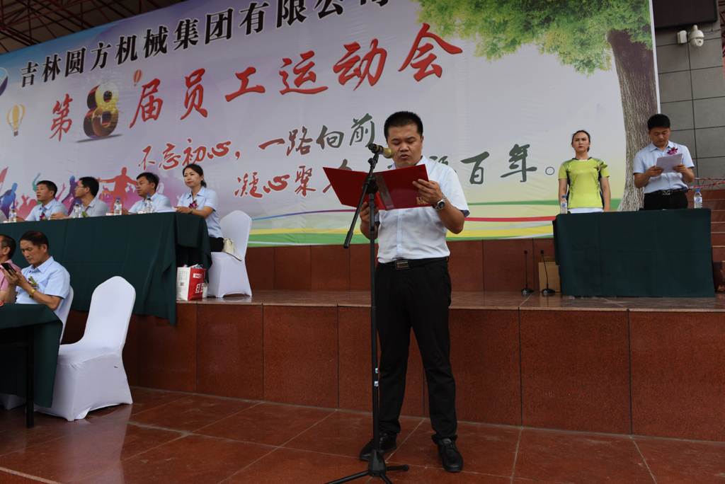 不忘初心,一路前行;凝心聚力,幸福百年。2019年7月24日,在樺甸市體育中心,吉林圓方機(jī)械集團(tuán)有限公司隆重舉辦第八屆員工運(yùn)動(dòng)大會(huì),集團(tuán)公司董事長(zhǎng)鐘景旭、副董事長(zhǎng)鐘志濤攜700余員工參加運(yùn)動(dòng)會(huì),集團(tuán)公司總經(jīng)理張學(xué)良致詞。樺甸市人大常委會(huì)副主任張建軍宣布本屆運(yùn)動(dòng)會(huì)開幕。在本屆運(yùn)動(dòng)會(huì)上,全體員工參與了20多項(xiàng)集體趣味運(yùn)動(dòng)。